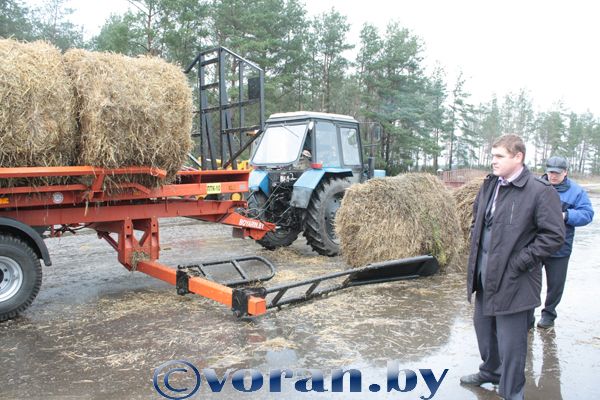 Побывали участники семинара и на молочно-товарном комплексе «Заболоть» СПК «Заболотский-агро». Этот объект с ввода в эксплуатацию стал самым проблемным не только в районе, но и в области. Допущенные ошибки при комплектации поголовья (когда скот какой угодно и откуда угодно покупался и поставлялся на комплекс), несоблюдение технологии, некачественные корма, их нехватка привели к высокой заболеваемости скота. Все это не могло не сказаться и на продуктивности поголовья. Как пояснил и.о. председателя Вацлав Мисюкевич, в настоящее время ситуация постепенно улучшается. Хотя и незначительно, но растут удои, увеличивается валовое производство, повысилась жирность молока. Стало лучше и с кормами, как по количеству, так и качеству. Их сохранность, приготовление были частично показаны участникам семинара. Кстати, здесь же была продемонстрирована в работе и новинка Вороновской сельхозтехники — прицеп ПТК-10. На нем можно не только перевозить рулоны соломы или сена, но и производить их погрузку и разгрузку без привлечения дополнительной техники. Своеобразный такой агрегат «3 в 1».