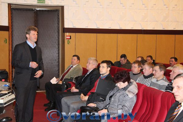 С учетом того, что сахарная свекла в текущем году будет размещена на 3 тысячах гектаров и выращивать ее будут все хозяйства района, эти вопросы были рассмотрены 8 февраля на районном семинаре-учебе главных агрономов, агрономов-агрохимиков и бригадиров производственных участков. О технологии возделывания и защиты сахарной свеклы от вредителей, болезней и сорняков в условиях Беларуси рассказал кандидат сельскохозяйственных наук РУП «Опытная научная станция» по сахарной свекле Н.А. Лукьянюк. Представитель компании «Марибо Сид» С.Е. Зимаков (на снимке) ознакомил специалистов с имеющимися в этой организации гибридами сахарной свеклы и технологией их выращивания. Подробную характеристику средств защиты, которые будут представлены на рынках нашей страны, дал региональный менеджер фирмы «Август» О.В. Евсиков.