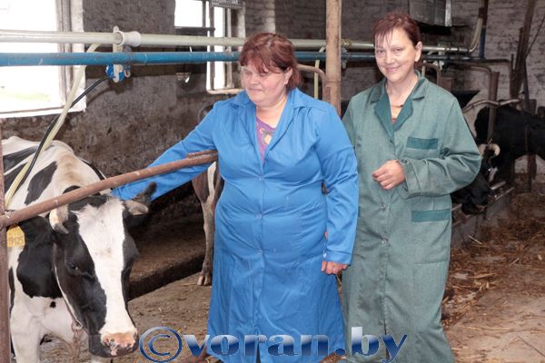 — Дойного стада на ферме насчитывается 290 голов, — сказал в беседе заведующий фермой Геннадий Ясюкайтис. — В штате 8 основных доярок и 2 подменных. Удой от одной коровы по состоянию на 2 июня составил 18,8 кг молока, что на 1,8 кг больше прошлогоднего. Увеличилось и валовое производство. Например, за май государству было реализовано 160 тонн, на 9 тонн больше, чем в мае 2013 года. На положительный результат влияют многие факторы, такие как вовремя подкошенные пастбища, добросовестная работа пастухов, соблюдение технологии выпаса, дополнительное кормление животных. Большой вклад в увеличение производства молока, конечно, вносят и все доярки, но особенно радуют успехи Валентины Волынец, которая надаивает в своей группе от коровы по 19,5 килограмма. У Галины Груздовской в среднем каждая корова дает по 18,5, а у Анны Гришко — по 17,6 килограмма молока.