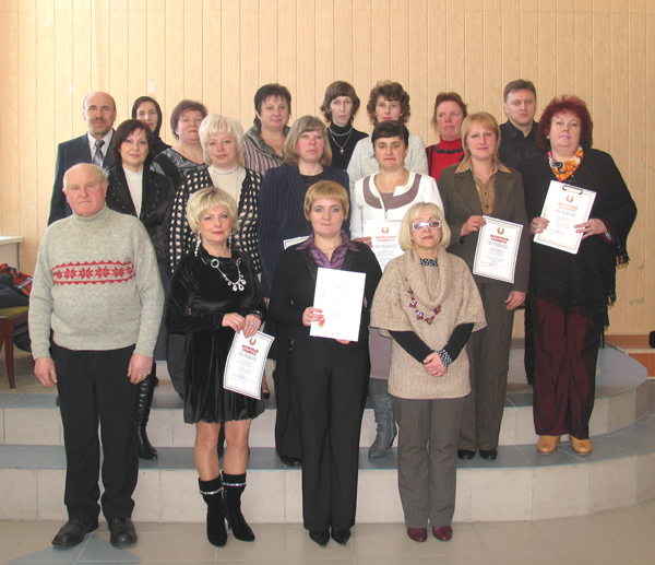 На здымку: бібліятэкары, клубныя работнікі і настаўнікі музычных школ, удастоеныя ўзнагарод райвыканкама, абласнога ўпраўлення