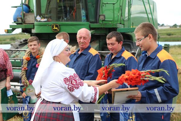 Как и водится издавна, главным героям жатвы, комбайнерам, — венки из колосьев и награды, а директору сельхозпредприятия — дожиночный сноп. Дипломами райсельхозпрода и районной профсоюзной организации работников АПК были также поощрены и водители-двухтысячники, а молодые комбайнер и водители удостоились еще благодарности и сувениров от районной организации БРСМ. Благодарственными письмами также отмечены супруги Александр и Ирина Буховцы, Роман и Фелиция Цидзики за воспитание таких трудолюби-вых сыновей — достойных продолжателей хлеборобского дела.