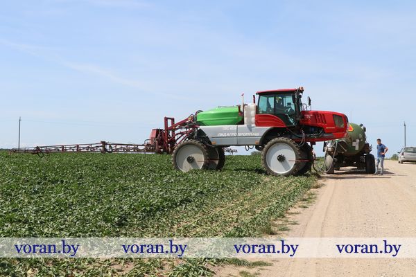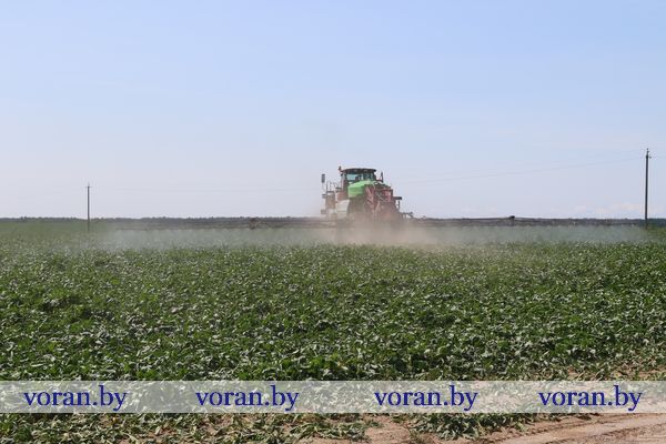 На очень важной и ответственной работе застали мы и механизатора Ивана Струкеля, который проводил последнюю в этом сезоне обработку сахарной свеклы фунгицидами против болезней. А всего с начала весны на опрыскивателе ОВС-4224 он обработал различными препаратами не меньше 10 тысяч гектаров кукурузы, рапса, свеклы, колосовых культур.