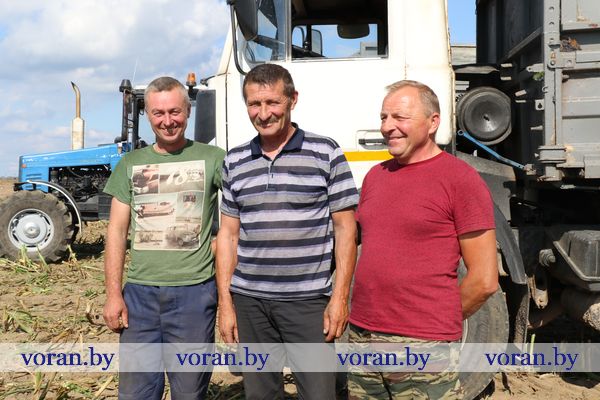 Такой же деловой настрой был у механизаторов и водителей Леонида Ивашки, Анатолия Каневича и Андрея Страчинского, которые задействованы на отвозке кукурузной массы.