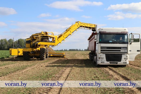 — Погодные условия сказались и на урожайности второго хлеба, — продолжил беседу главный агроном уже на картофельном поле. — Начали с уборки раннего сорта «манифест». Накапываем по 200 центнеров с гектара. В основном клубни среднего и мелкого размера, их отправляем на переработку на крахмал в Рогозницу. Самый крупный закладываем в картофелехранилище. На следующей неделе приступим к уборке более продуктивных сортов — «скарб», «бриз» и «янка».