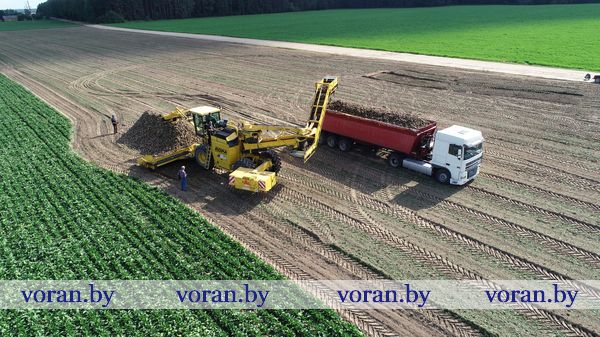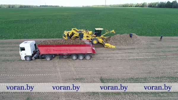 Преждевременно говорить и об урожайной отдаче от свекловичного поля, так как уборка сладких корнеплодов ведется только три дня и не на лучших полях. Те не менее на вчерашнее утро было вырвано 15 гектаров, урожайность — 350 ц/га. На Скидельский сахарный комбинат уже поставлено 345 тонн. Впечатлил на поле слаженный уборочный ритм. На свеклоуборочном комбайне KLEINE работал механизатор Генрих Сурконт, а на погрузчике ROPA — его коллега Петр Крахмальчик из КСУП «Гирки». Дело в том, что это сельхозпредприятие приобрело погрузчик недавно и временно доверило протестировать его в деле на больтишских полях. А разобраться в сплошь компьютеризированном производительном агрегате помогал Алексей Шатровский, инженер по сервисному обслуживанию ЧПТУП «Белджидисервис» из города Кобрина.