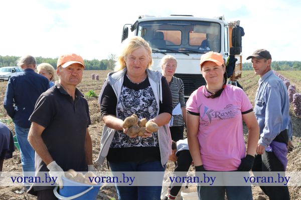 — Приезжаю сюда уже пять лет, — разговорилась одна из лидчанок. — В бригаде собрались соседи, друзья и просто знакомые — так организовалась наша дружная компания. За эти годы к нам привыкли уже, мы здесь как свои. Руководство хозяйства хорошее. Поля чистые, собирать картофель — одно удовольствие. Копалки распахивают борозды вовремя, нет задержки и с транспортом на отвозке клубней. Погода как на заказ. Знаем хорошо Людмилу Михайловну и с большим желанием приезжаем сюда помочь. Не сомневаемся, что и заработаем хорошо.