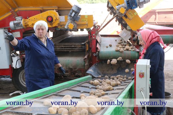В целом по району в сельхозпредприятиях района уборка второго хлеба набирает темпы. На вчерашнее утро из 525 гектаров было выкопано уже 45, или 9%. Накопано клубней — 1 160 тонн. Наиболее активно ведется эта работа в предприятиях «Мисевичи» и «Больтишки».