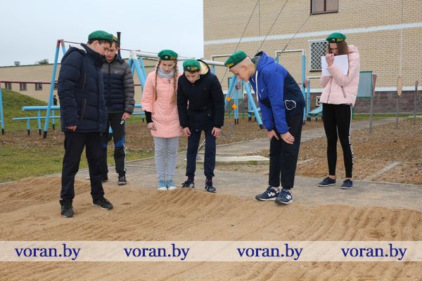 Во время смотра-конкурса «Патриоты Вороновщины» (Начский УПК), «Зевс» (Беняконская СШ), «Алмаз» (Конвелишский УПК), «Альтаир» (Клайшанская БШ), «Дот_патриот» (Дотишская СШ), «Полоса» (Полецкишская СШ), «Патриот» (Заболотский УПК) демонстрировали знание основ военного законодательства и топографии, выполняли строевые приемы, мерились быстротой и ловкостью в комплексной военизированной эстафете. На заставе ребята выполняли практическое задание по следопытству в городке на контрольно-следовой полосе, и, конечно, смаковали настоящую солдатскую кашу на обед.