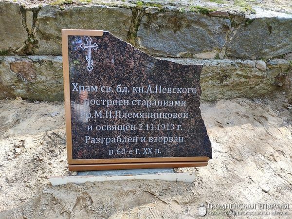 Благоустройство территории, где находится фундамент разрушенного в 60-е годы храма, установка поклонного креста на месте престола, импровизированного купола и памятной таблички сделаны силами прихожан прихода во имя святых мучеников Антония, Иоанна и Евстафия Виленских по инициативе и под руководством настоятеля местного храма иерея Игоря Шило.