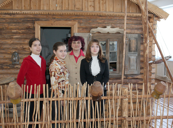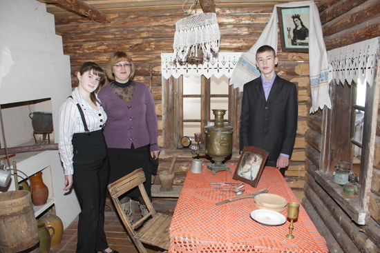 На здымках: кіраўнік этнаграфічнага музея Ф. Войшніс (у цэнтры) з вучнёўскім актывам; намеснік дырэктара па выхаваўчай рабоце Г. Суркант з удзельнікамі рэспубліканскай акцыі “Жыву ў Беларусі і тым ганаруся”.