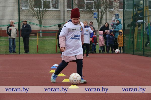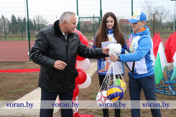 Глава района вручил будущим спортсменам мячи. Такой же подарок от РУП ЖКХ преподнес и начальник Радунского участка Александр Миндюль.