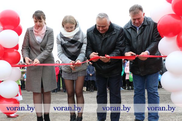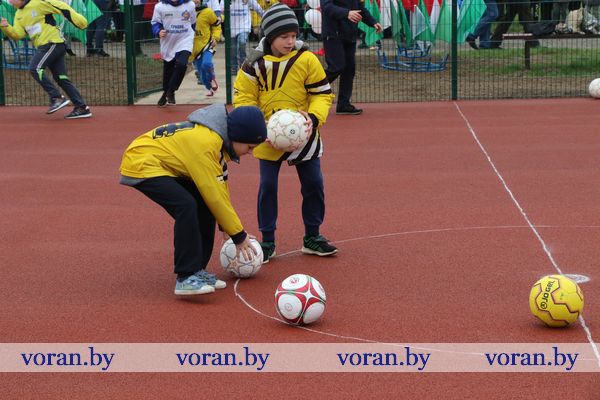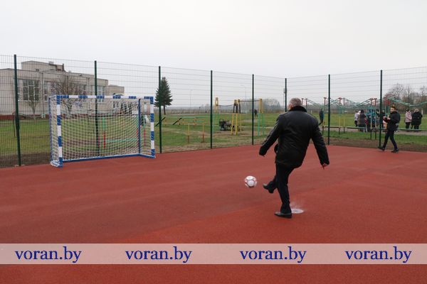 После перерезания красной ленты первыми опробовали площадку гости праздника. Председатель райисполкома отправил мяч в футбольные ворота новой площадки. Затем дружной гурьбой высыпали школьные футболисты. Еще долго оттуда доносились радостные окрики «Гол!» и слова подбадривания болельщиков.