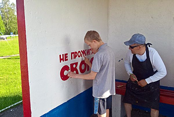 По словам начальника районной службы спасения Олега Волосевича, для декорирования этот павильон выбран неслучайно. Он расположен в центре агрогородка, неподалеку школа и движение транспорта здесь интенсивное. Информативное граффити хорошо видно не только ожидающим транспорт пассажирам, но и проезжающим водителям, прохожим. Содействие в оформлении остановки Вороновскому РОЧС оказали руководители ДРСУ-120 и КСУП э/б «Октябрь». Больше недели работал над объектом художник-оформитель — педагог Вороновского центра творчества детей и молодежи Дмитрий Лялько. Процесс не оставил равнодушными местных жителей. Подходили, интересовались. Одобрительно высказывались насчет полезной инициативы спасателей взрослые, а дети не против были и помочь.