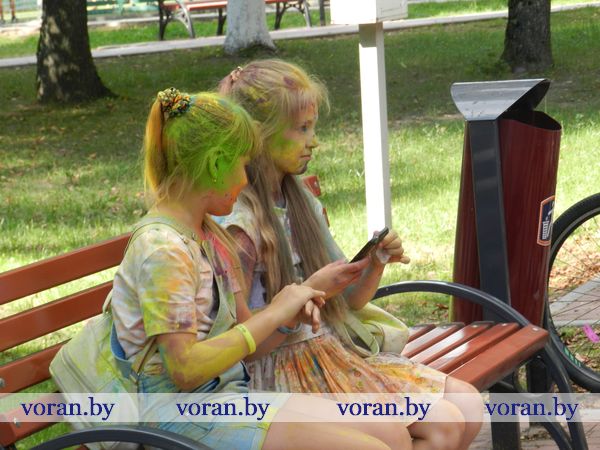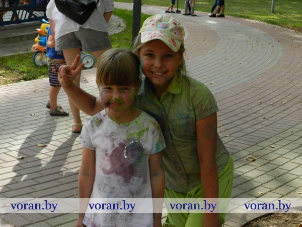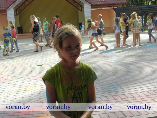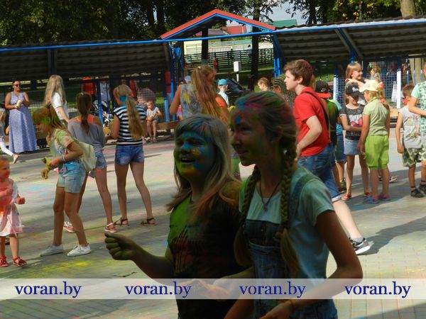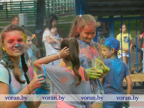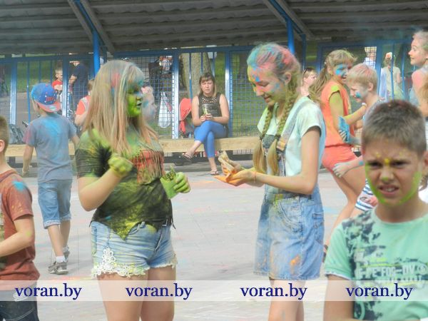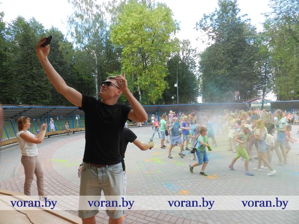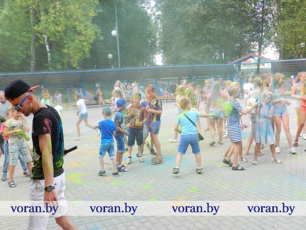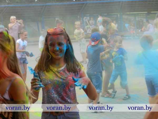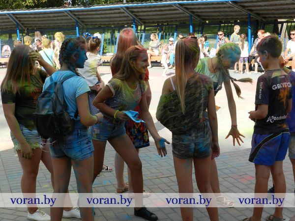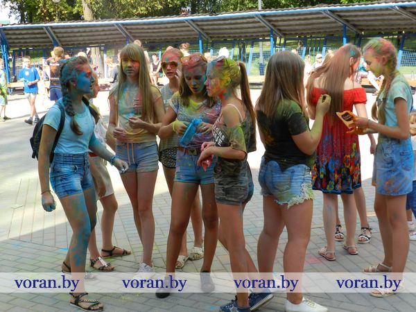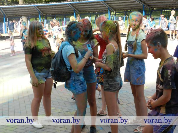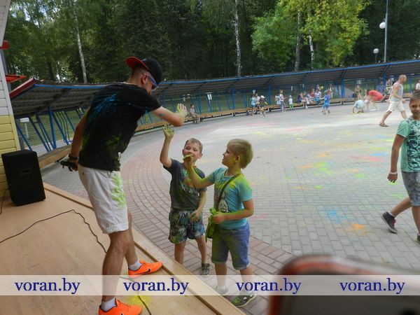 Далей дзяцей і падлеткаў чакала танцавальна-гульнёвая праграма “Провожаем лето” і фестываль фарбаў “Холі”, якія адбыліся ў гарадскім парку. Вось так На завяршэнні пяты дзень Нядзелі культуры быў размаляваны каляровымі краскамі.