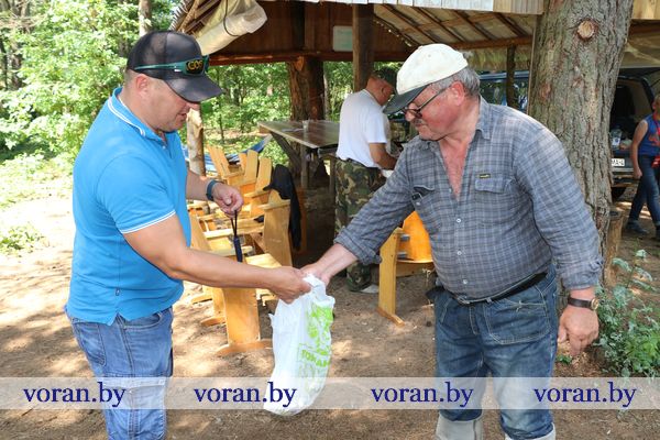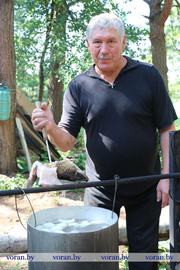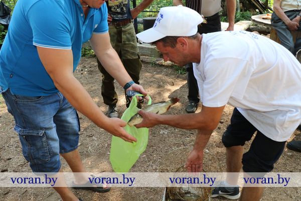 Неспешно прогуливаясь вдоль берега, не заметила, как пролетело время соревнований. Громкий гудок нарушил царившую идиллию. И участники оживились — все-таки исход борьбы интригует. Итак, контрольное взвешивание! Победителями с общим уловом в 5 кг 300 г стали представители Вороновского района, на втором месте расположилась ивьевская, на третьем — щучинская команда. В личном зачете победу праздновал Артем Шуппо (2,135 кг), 2-е занял Михаил Сомов (1,975 кг) и 3-е — Александр Чернышов (1,593 кг). Среди юниоров отличились Илона Чернышова, Виталий Протасевич и Евгений Михневич. Все они получили подарки от районной организационной структуры РГОО «БООР». В завершение не грех и ароматной наваристой ушицей полакомиться, а также рыбой по эксклюзивному рецепту горячего копчения — пальчики оближешь!
