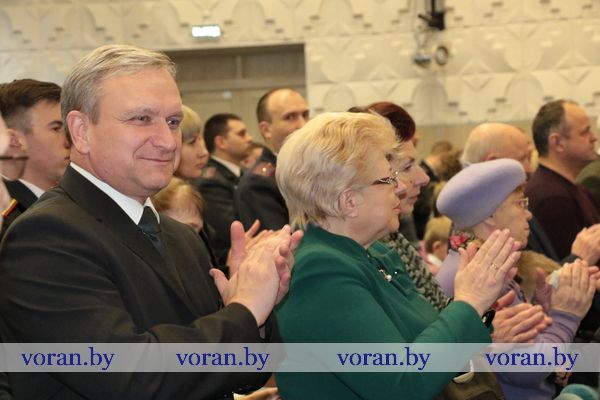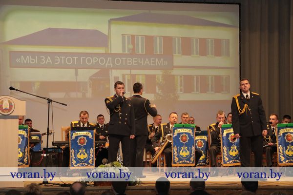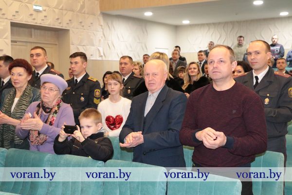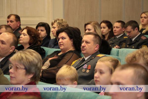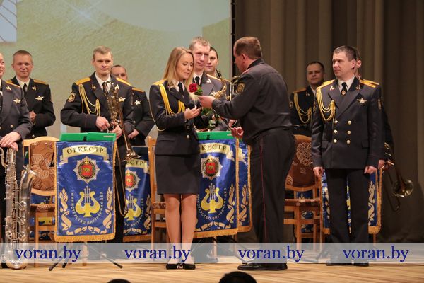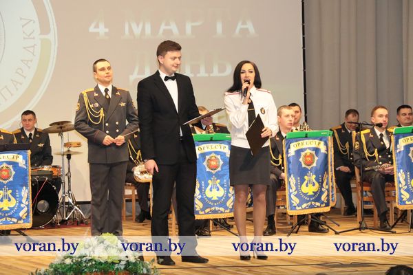 Сегодня на сцене Вороновского городского центра культуры и досуга сотрудников органов внутренних дел своими песнями поздравляли оркестр Управления внутренних дел Гродненского областного исполнительного комитета под управлением Сергея Владимировича Будениса, солисты оркестра, лауреаты международных конкурсов Ольга Борисевич, Андрей Григорьев и Роман Лукашенко, а также артисты вороновской эстрады Александр Мелько, Елена Ястремская, Анастасия Куель, Каролина Ивуть и виртуоз-аккордеонист Юрий Стрелинский. Много теплых слов в этот день звучало и от ведущих мероприятия директора Вороновской ДШИ Виктора Тарчинского и лейтенанта милиции Инны Халимоненко.