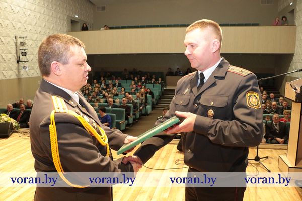 Во время торжественного собрания лучшим сотрудникам вороновской милиции вручили медали, почетные грамоты и благодарности за достигнутые результаты в оперативно-служебной деятельности.