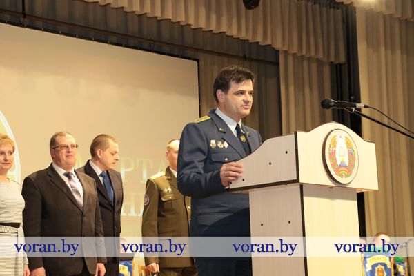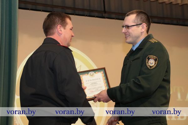 Слова поздравления адресовали стражам порядка прокурор Вороновского района Валериан Колесник, председатель суда Вороновского района Рита Глотько, начальник Вороновского районного отдела Следственного комитета Алексей Кашлей, начальник Вороновского районного отдела по черезвычайным ситуациям Анатолий Тарамыно, заместитель начальника Гродненской региональной таможни, заместитель начальник Беняконского таможенного поста Юрий Чурило и военный комиссар Вороновского района Александр Гайжевский. А представитель Лидского пограничного отряда Виктор Стома вручил награды за взаимодействие в охране рубежей страны.