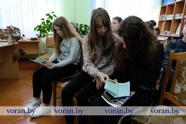 В гостях у библиотекарей побывали учащиеся 9 «Б» класса вместе с классным руководителем Н.А. Мукланович. Перед школьниками выступили заведующая библиотекой Е.Н. Велигор, библиотекари А.В. Литвинович и И.П. Русак, а также специально приглашенный гость из Вороновского райЦГЭ Н.Э. Волынец. Они рассказали ребятам о вреде табакокурения, вызванных этой вредной привычкой заболеваниях. Девочки и мальчики просмотрели тематический видеоролик, после чего ознакомились с выставкой по данной теме.
