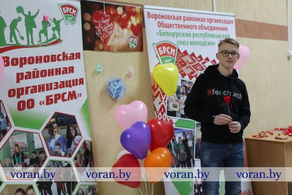 За день до официального дня праздника фойе клуба колледжа преобразилось: появилась необычная фотозона и множество шаров в виде разноцветных сердец. Парни и девушки не преминули сделать снимки на память с любимыми педагогами, озорными однокурсниками и гостями — представителями районного комитета БРСМ.