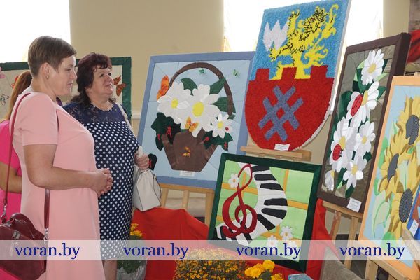 По-настоящему удивила «первичка» БСЖ Вороновского ТЦСОН. Рукодельницы Данута Матыленок, Виктория Микулко, Татьяна Михневич и Ирина Зузо представили картины в техниках лоскутного тиснения и торцевания на пенопласте.