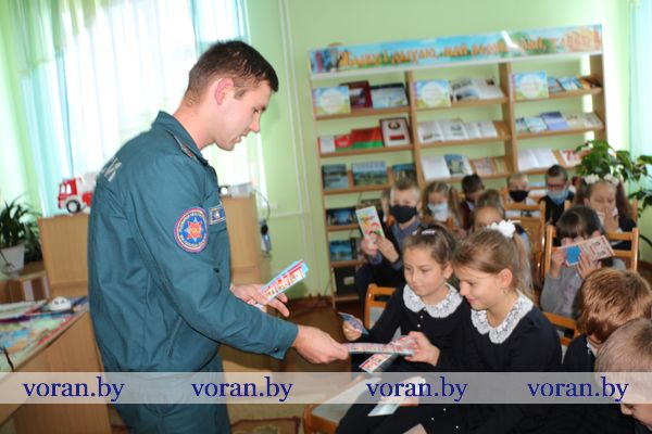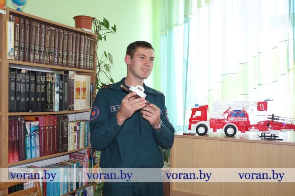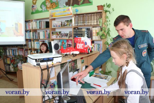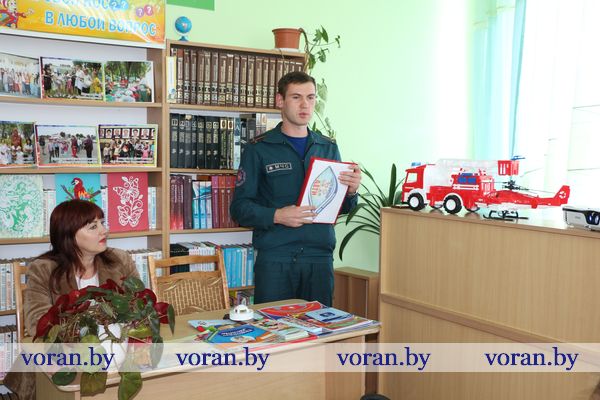 Однако вскоре внимание ребят привлек гость библиотеки — инспектор сектора пропаганды и взаимодействия с общественностью РОЧС Вадим Хлюст. У спасателя и третьеклассников быстро завязался диалог. Ребята дружно отвечали на его вопросы по теме пожарной безопасности. Оказалось, они знают, как пользоваться огнетушителем, для чего предназначен АПИ. По бойким ответам можно было судить о том, что в случае пожара дети будут действовать четко и без лишней суеты. Закрепили «пройденный материал» просмотром красочного видеоролика и тематической игрой.