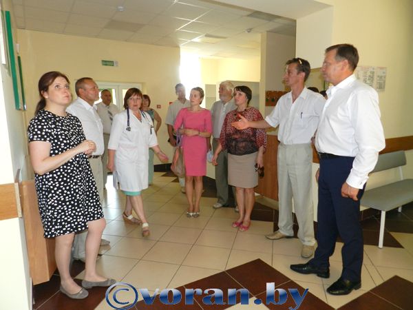 Следующим пунктом в программе рабочего визита было посещение объектов. Побывала делегация на вороновском пруду, где начальник отдела жилищно-коммунального хозяйства А.Н. Барсуков рассказал о планах по его благоустройству. Начальник отдела образования, спорта и туризма Е.Я. Ганевич при посещении городского стадиона поделилась наработками в оборудовании здесь зоны активного отдыха для молодежи. Не менее интересным для гостей стал визит и в центральную районную больницу. Игорь Владимирович Копть провел небольшую экскурсию, в ходе которой озвучил общую для всех проблему — ранней диагностики заболеваний раком, в особенности молочной железы. В рентгенкабинете показали, каким оборудованием для исследований располагает наше медучреждение и обсудили, что еще необходимо приобрести для дальнейшей борьбы с этим коварным заболеванием. Поднимался вопрос эпидемиологической безопасности. Инфекционное отделение Вороновской больницы, тоже может стать целью проекта.