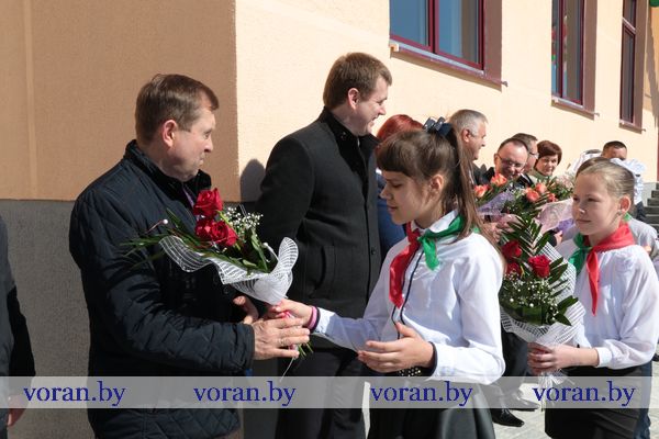 Хорошим подарком для педагогического и ученического коллективов школы стали обновленные столовая, спортивный и актовый залы. С этим значимым для жителей райцентра событием присутствующих поздравили представители местной власти во главе с председателем райисполкома Николаем Розумом, начальник управления образования облисполкома Александр Сонгин, начальник управления по реализации инвестиционных проектов Национального института образования Павел Малыщенко, генеральный директор управления капитального строительства облисполкома Валерий Кривец, генеральный директор Лидского строительно-монтажного треста №19 Владислав Лабецкий.