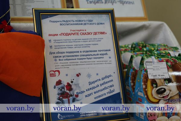 Вихрь забав закружил ребятню и увлек в чудесную страну сказки. Загадки, песни, танцы, мультики и, конечно, сладкие подарки. Радость ожидания праздников с малышами разделили руководители районной организации ОО «Белорусский фонд мира» З.С. Вильбик и районного отделения РОО «Белорусский детский фонд» Т.Г. Сушинская. Из их рук мальчишки и девчонки получили первые подарочки — конфетные наборы. К веселому хороводу присоединились представители местной власти, депутатского корпуса, общественных объединений. Некоторые взрослые не забыли оформить подписку на детское издание для воспитанников Радунской школы-интерната и опустить подарок для них в «новогоднюю копилку». К слову, «дерево добра» установлено в каждом почтовом отделении — любой желающий может присоединиться. Сегодня же отправляйтесь туда со своим ребенком и, посоветовавшись с ним, показав пример доброго дела, оформите подписку на детские периодические издания для воспитанников школы-интерната. Несомненно, добро сближает, как ничто другое.