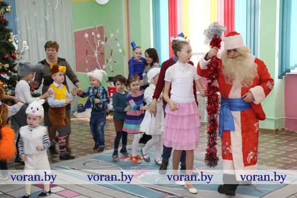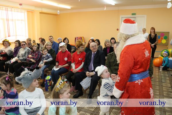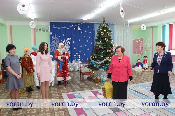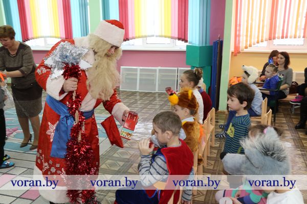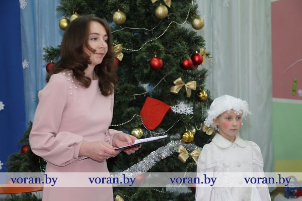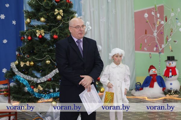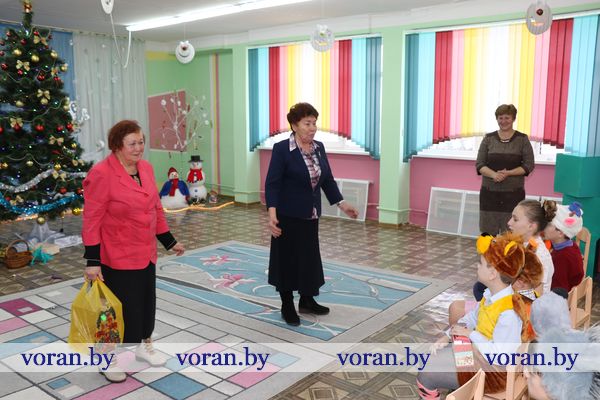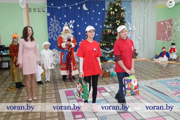 Среди гостей были и те люди, которые пожелали дополнить праздник приятными сюрпризами. От своих трудовых коллективов и общественных объединений они привезли подарки. Сертификат для учреждения на 150 рублей — райком профсоюза работников АПК, набор посуды — районный совет ветеранов и районная организация «БелОИ», конфетные наборы и игрушки — Вороновский РЭС, сладости — районный военный комиссариат. Также ребята получили подарки, которые собрали для них волонтеры отряда районной организации БОКК «С искрой в сердце» в рамках кампании «Елка желаний».