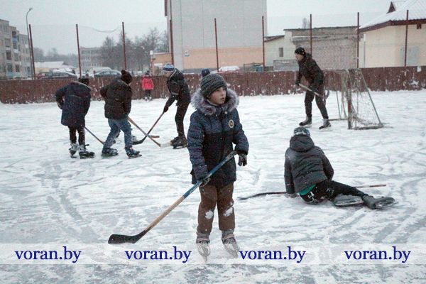 Сотрудники отдела образования, спорта и туризма райисполкома в первые морозные дни начали обустройство открытых катков. Уже в среду встретила любителей острых ощущений хоккейная площадка в райцентре. Десятка два розовощеких мальчишек и девчонок гоняли шайбу и учились делать «ласточку». Пускай не все было гладко, но даже падения не могли омрачить восторг и радость детворы. За тем, как на льду резвились школьники, наблюдали не только прохожие взрослые, но и другие ребята. Видимо, они не прочь были переобуться в коньки. Кстати, в Вороновской СДЮШОР открыт прокат этого снаряжения. Пункт проката работает с понедельника по пятницу с 8.30 до 18.00, обеденный перерыв — с 13.00 до 14.00. Есть возможность взять коньки на все выходные в пятницу. Стоимость: один час — 1,5 рубля; на сутки — 6 рублей.