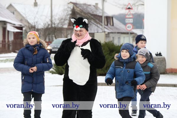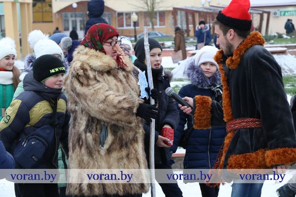 В праздничном хороводе снова закружились мальчишки и девчонки. В этот раз они сами оказались создателями новогодней сказки. Ребятам нужно было расколдовать елочку и Деда Мороза. Для этого нужно было открыть заколдованные замки. Чтобы раздобыть ключи от них, дети направились в путешествие по сказочным царствам. По дороге им встретились Кот Баюн, Бага-яга, Соловей-разбойник, у которых и были необходимые ребятам волшебные предметы. Детишки их заработали благодаря смекалке, прозорливости и умению танцевать. И как только заколдованные замки открыли, чары исчезли. Дед Мороз со Снегурочкой встретили ребят с улыбкой и подарили им гостинцы за чудесно прочитанные стихотворения.
