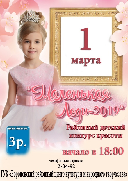 В Вороново впервые пройдет районный детский конкурс красоты "Маленькая леди-2019" В посёлке 28 февраля 19 1564