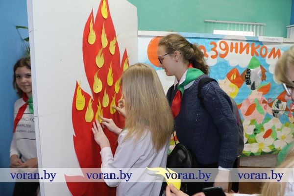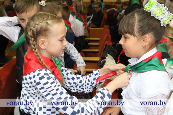 На районном пионерском слете прошел праздничный прием в пионеры октябрят. Свое торжественное обещание они произнесли перед лицом всего актива районной пионерской организации, а галстуки им повязали педагоги и лидеры БРПО. Членские билеты БРСМ вручили тринадцати былым пионерам, пополнившим ряды молодежной организации.