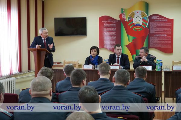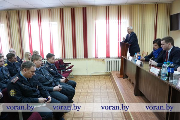 С прошлого года С.В. Абламейко вошел в состав общественного совета при МВД. Выступление академика перед личным составом Вороновского РОВД было посвящено внедрению информационных технологий в деятельность правоохранителей. Он отметил, что IТ прочно вошли во все сферы нашей жизни. Их использование значительно ускоряет и улучшает качество работы. Электронные ресурсы сегодня активно используются в органах государственной власти, в школах, учреждениях здравоохранения, военизиро-ванных структурах. Уже внедрена в практику единая информационная система Следственного комитета Республики Беларусь, движется в этом направлении и Министерство внутренних дел. И в дальнейшем процессу информатизации будет уделяться много внимания. Как известно, в конце прошлого года Президентом Беларуси подписан Декрет «О развитии цифровой экономики». Столичного гостя также интересовало, как используется электронный продукт в деятельности вороновских правоохранителей.
