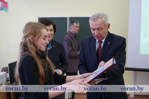 — В 2017-м нам удалось приумножить имеющиеся наработки, расставить акцен-ты в работе с высокопро-фессиональными педагогами и мотивированными учащимися. За год завоевано 12 дипломов и 3 грамоты управления образования облисполкома. Это 52% результативности от общего числа олимпиадников и седьмая позиция в области среди регионов. Стабильно удерживает наш район лидирующие позиции на заключительном этапе республиканской олимпиады. Расширяем формы взаимодействия с вузами — БГУ, ГрГУ имени Я. Купалы. Подписан договор о сотрудничестве с ведущим вузом Беларуси, успешно реализован проект «БГУ — педагогам Вороновщины», с участием ректората проходят и научно-практические конференции, в Вороновской школе создан центр изучения китайского языка. По-прежнему много внимания уделяется материальной поддержке одаренных учащихся. Ежегодно они становятся обладателями премий областного фонда Мира, областного исполнительного комитета имени А. Дубко, специального Фонда Президента Республики Беларусь, а также именной премии академика Абламейко.