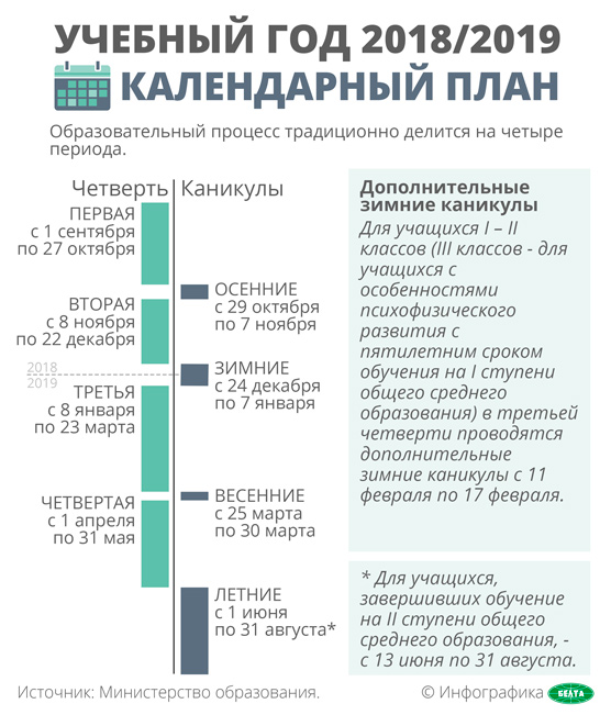 * Для учащихся, завершивших обучение на II ступени общего среднего образования, - с 13 июня по 31 августа.