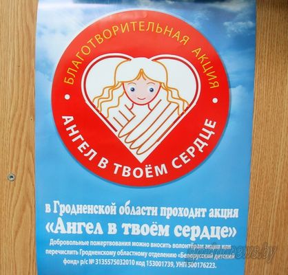 Для перечисления денег в рамках акции «Ангел в твоем сердце. Ты в сердце ангела» работает расчетный счет №3135575032010 в дирекции по Гродненской области ОАО «Белинвестбанк», код 153001739, УНП 500176223.