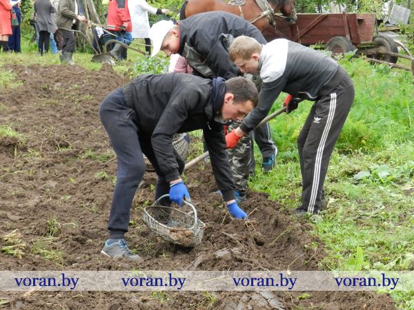 Вороновское районное объединение профсоюзов инициировало акцию «Наша забота вам, ветераны!» с участием профсоюзной молодежи района. Председатель молодежного совета — педагог-организатор Вороновской СШ Эдуард Бутрим, сотрудник автопарка №14 Андрей Шишко, председатель первички Вороновского колледжа Лилия Гайдукевич вместе с учащимися, вооружившись всем необходимым, дружно вышли на работу. Картофель копали по старинке — «под коня». Участок у ветерана небольшой, и технике там просто не развернуться. Кстати, управляла лошадью сама председатель районного объединения профсоюзов Елена Ястремская. Работа кипела полным ходом, и вот, словно «солдаты», на участке выстроились мешки с картофелем. Ветеран, контролируя процесс, одобрительно подбадривал: «Молодцы, хорошо работаете!» Через час ребята уже грузили урожай на телегу. Не будут лишними семье ветерана и привезенные фермером Эдвардом Саковичем несколько мешков картошки, капусты, лука и моркови, а еще и парочка сеток с овощами от РУСП с-з «Вороновский». Такую плодоовощную помощь получат все ветераны Великой Отечественной войны, проживающие в нашем районе.