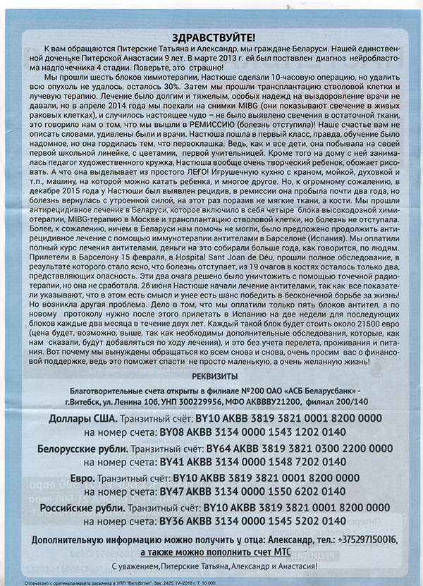 Поможем Настеньке!
