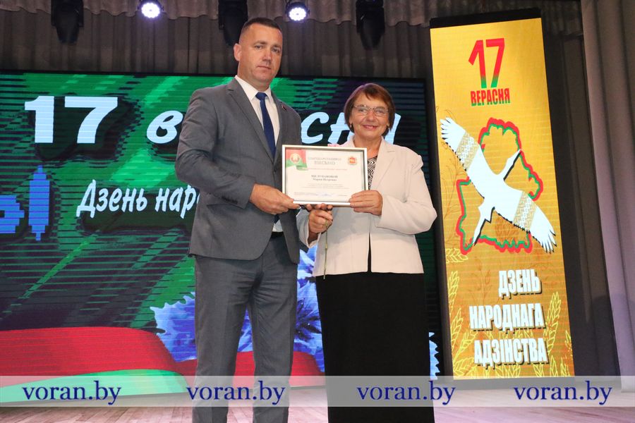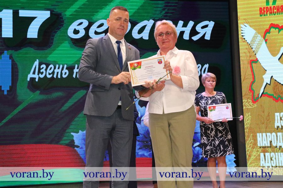 Граматай Воранаўскага раённага выканаўчага камітэта за шматгадовую плённую працу, узорнае выкананне працоўных абавязкаў, актыўны ўдзел у грамадскім жыцці раёна і ў сувязі са святкаваннем Дня народнага адзінства адзначаны