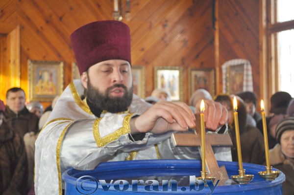 В субботу утром в церкви Святого благоверного великого князя Александра Невского г.п. Вороново прошла божественная литургия с Великим освящением воды. В крещенский день в храме было особенно оживленно. Верующие принесли с собой всевозможную тару, чтобы запастись святой водой на целый год. Христиане верят, что крещенская вода — великая святыня. Она приносит духовное и телесное здоровье. Православные бережно ее хранят возле икон и употребляют в случае болезни, окропляют жилища, дают тем, кто не может приступить к святому Причастию.