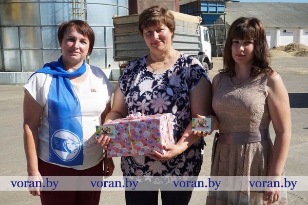 Каждая получила подарок и календарик-напоминание о предстоящих выборах Президента Беларуси: Люция Михайловна Густь (КСУП э/б «Октябрь»), Альфреда Витольдовна Соколовская (КСУП «Элит-Агро Больтиники»), Галина Сергеевна Кравневич (КСУП «Больтишки»), Ирина Антоновна Лемантович (КСУП э/б «Погородно»), Ирина Марьяновна Генселевич (КСУП «Мисевичи»), Данута Ромуальдо Винцкевич (КСУП «Гирки»), Ядвига Михайловна Озаровская (УП «ГМК-Агро»), Ольга Александровна Милюн (КСУП «Дотишки»).