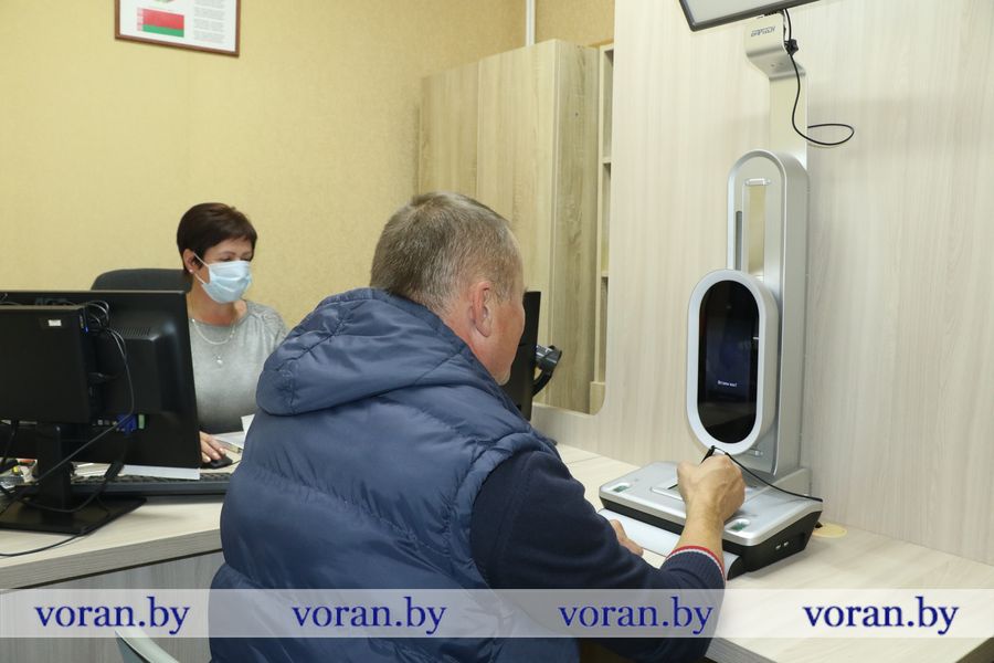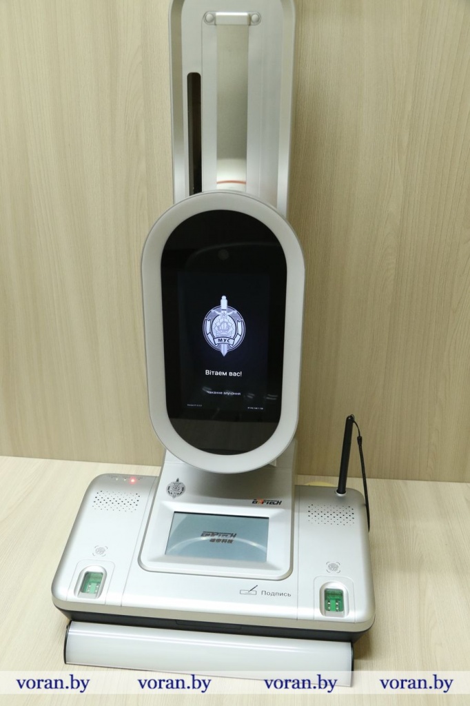 Оформление биометрических данных — новшество как для граждан, так и для сотрудников ОГиМ, которые начали реализацию проекта. Один из кабинетов отдела по гражданству и миграции Вороновского РОВД оснащен стационарным комплексом для снятия биометрических данных. Чтобы не создавать очередь на подачу документов, работают несколько специалистов: кто-то занят оформлением на документ нового образца, а другие — старого.