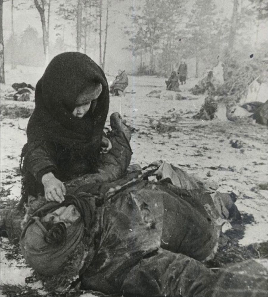 Покров снега превратился в сплошное месиво, кругом лежали трупы умерших людей, земля почти везде была покрыта жидкой фекальной массой. Все нечистоты при оттепели стекали в болотистые части лагерей, откуда узники вынуждены были черпать воду, чтобы промочить горло, размешать мучную похлебку для детей.