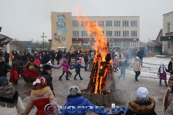 І, канечне ж, напрыканцы нельга не згадаць пра яшчэ адну адметнасць такога свята — спальванне пудзіла Зімы як пазбаўленне ад усяго цёмнага, кепскага. Зырка гарэў масленічны агонь і дарыў нам надзею на светлае і добрае ў жыцці. Дружным карагодам госці свята праводзілі зіму, жадаючы адзін аднаму здароўя, а ў справах — натхнення. Хай зімка яшчэ рассыпае апошнія жмені сняжынак, але чырвонае сонейка ўжо ўзнімаецца над зямлёй, і гурт удзельнікаў святкавання звонкай песняй вітае прыход вясны. А яна, верыцца, не прымусіць сябе доўга чакаць.