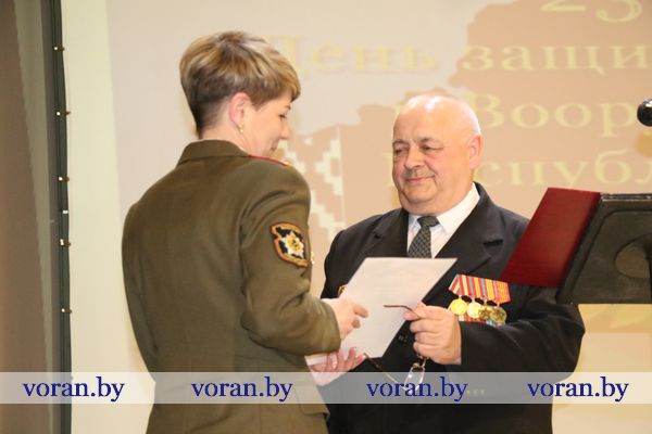 К праздничной дате были приурочены награды. Грамота военного комиссариата Вороновского района была вручена майору Юрию Балько, Багодарственное письмо — лейтенанту запаса Владимиру Рыхлевичу. Благодарность Гродненской областной организации Белорусского союза офицеров объявлена капитану Светлане Мацкевич, старшим лейтенантам запаса Андрею Карповичу и Дмитрию Бигоню.