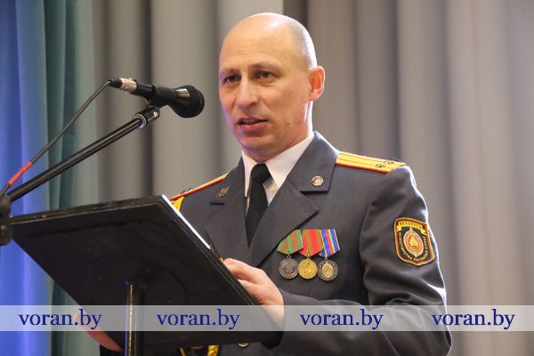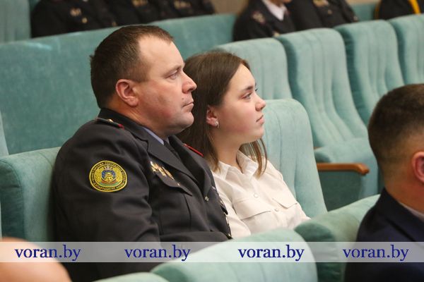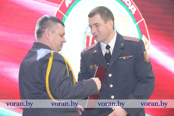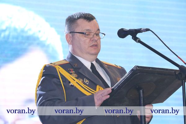 Приветственный адрес начальника УВД Гродненского облисполкома Вадима Синявского зачитал заместитель начальника УВД облисполкома, начальник милиции общественной безопасности Валентин Осипович. Слова благодарности за достойное исполнение служебных обязанностей, верность долгу и закону сотрудникам милиции адресовала председатель райсовета депутатов Елена Ганевич:
