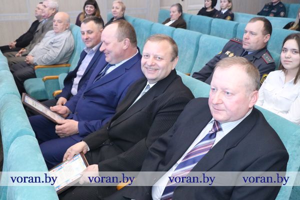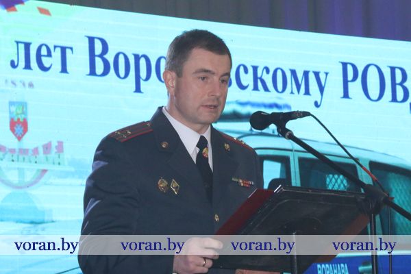 К поздравлениям присоединились коллеги из других ведомств: прокуроры Вороновского района, суда, РОСК, Беняконского таможенного поста, военного комиссариата Вороновского района, РОЧС, отдела охраны Департамента МВД, Лидского погранотряда. На сцену поднимались и руководители предприятий, с которыми РОВД сотрудничает на протяжении многих лет, — Вороновского ПМС, РУП ЖКХ, РЭС, Вороновской сельхозтехники, Вороновского филиала облпотребобщества.