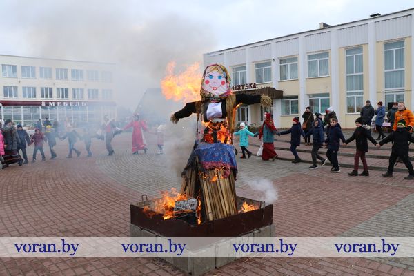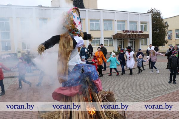 Пакуль арганізатары рыхтаваліся да святкавання Масленіцы, зіма сыпанула зранку снегам. Дала зразумець — не хоча саступаць вясне месца, хоць і была ў гэтым годзе лагоднай. Але настойлівае вясновае сонца перамагло непагадзь акурат перад пачаткам дзейства на плошчы. Песні, танцы, спальванне на вогнішчы пудзіла канчаткова аслабілі пазіцыі Зімы-матухны. Пара ўжо развітвацца!